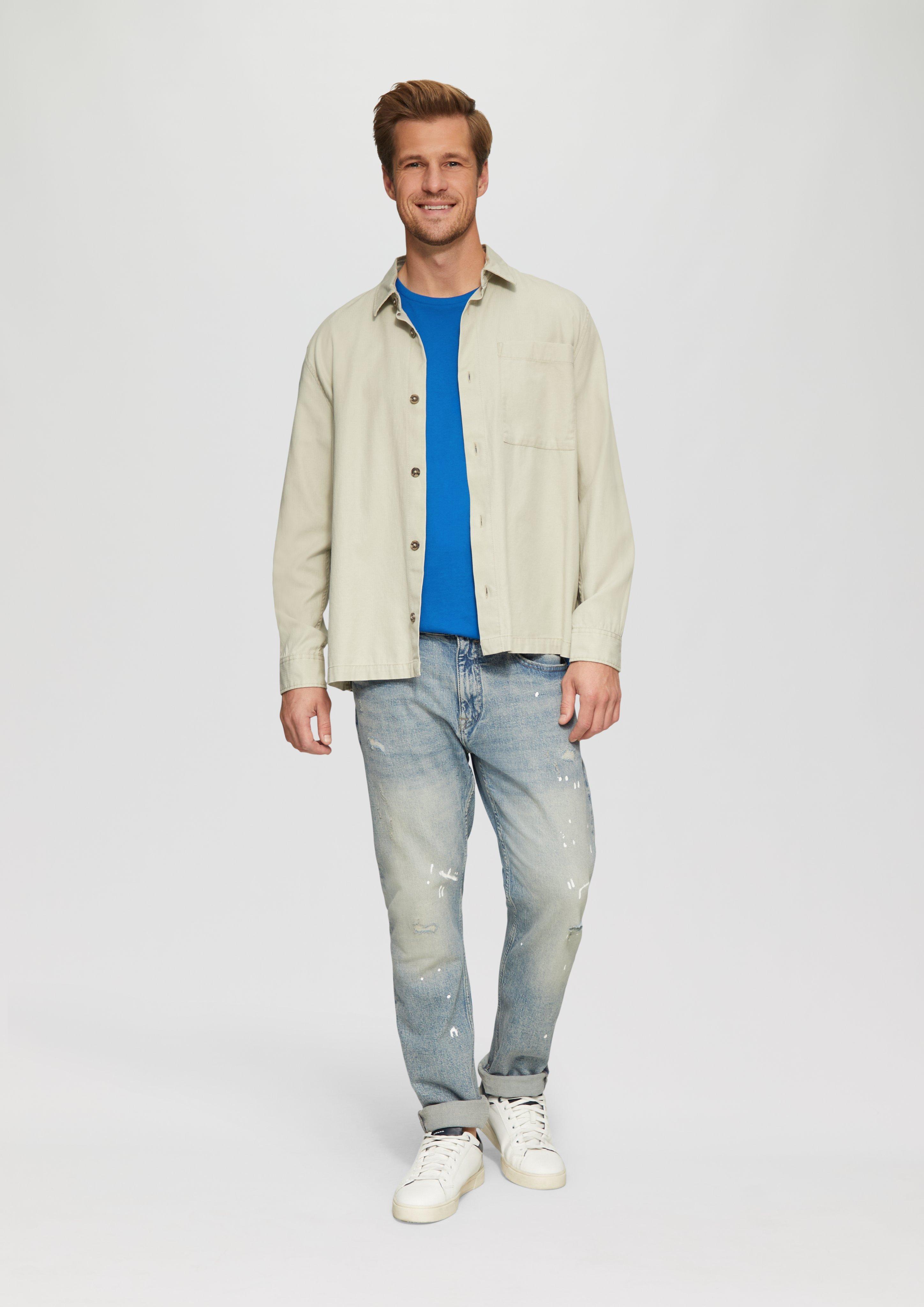 V tej majici iz čistega bombaža se mehko in zračno udobje prepleta s priložnostnim slogom. Zaradi klasičnega vratu in pravilnega kroja je vsestranska osnovna oprema garderobe. Odlična je za sproščene vikende ali ležerne petke v službi. Združite jo s kavbojkami za lahkoten videz ali pa jo oblecite pod suknjič in jo oblecite. Kako boste oblikovali svojo majico?